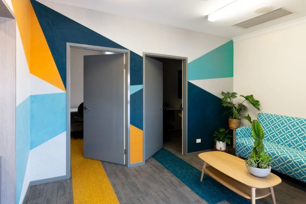 Resicom completed the office fit-out for Advocacy WA at 4 Plaza Street, South Bunbury. The project involved transforming the interior into a functional and accessible workspace, tailored to the needs of the organisation. Key features included the installation of private consultation rooms and the use of green and blue privacy screen dividers to enhance both aesthetics and functionality.