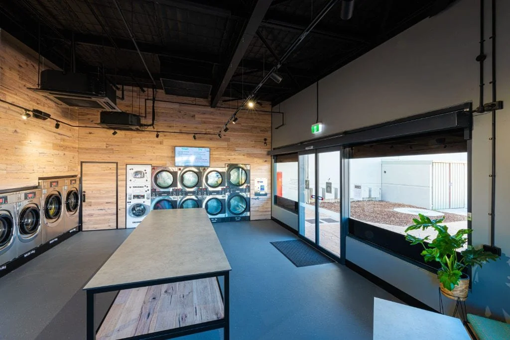 Resicom completed the fit-out of Lint Laundrette, a modern self-service laundry facility located at 1 Brittain Road, Bunbury, within the Parks Shopping Centre. The project involved transforming an existing retail space into a functional laundromat, incorporating state-of-the-art washing and drying equipment. Key features included the installation of 10kg, 14kg, and 18kg washers, as well as 15kg and 21kg dryers, catering to various customer needs.