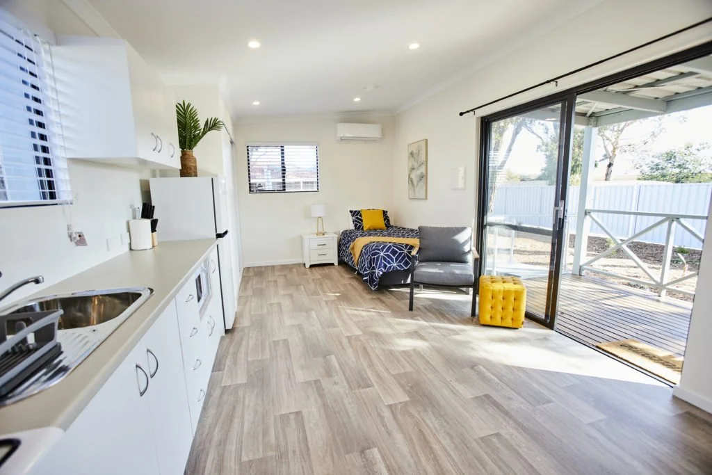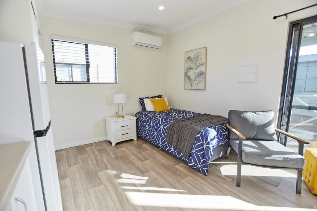 Resicom constructed and fit out a series of compact, self-contained homes on Timperley Road, Bunbury, in partnership with the Salvation Army. The homes were designed to provide transitional accommodation, featuring modern interiors and efficient layouts that maximise functionality within a compact footprint.